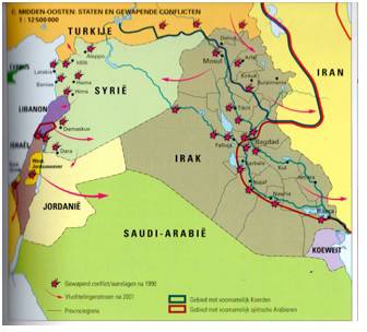 Op deze kaarten uit de Bosatlas kan je zien dat er bij Israël verschillende kenmerken zijn van conflicten. Deze kenmerken zorgen er vaak voor dat een conflict ontstaat.